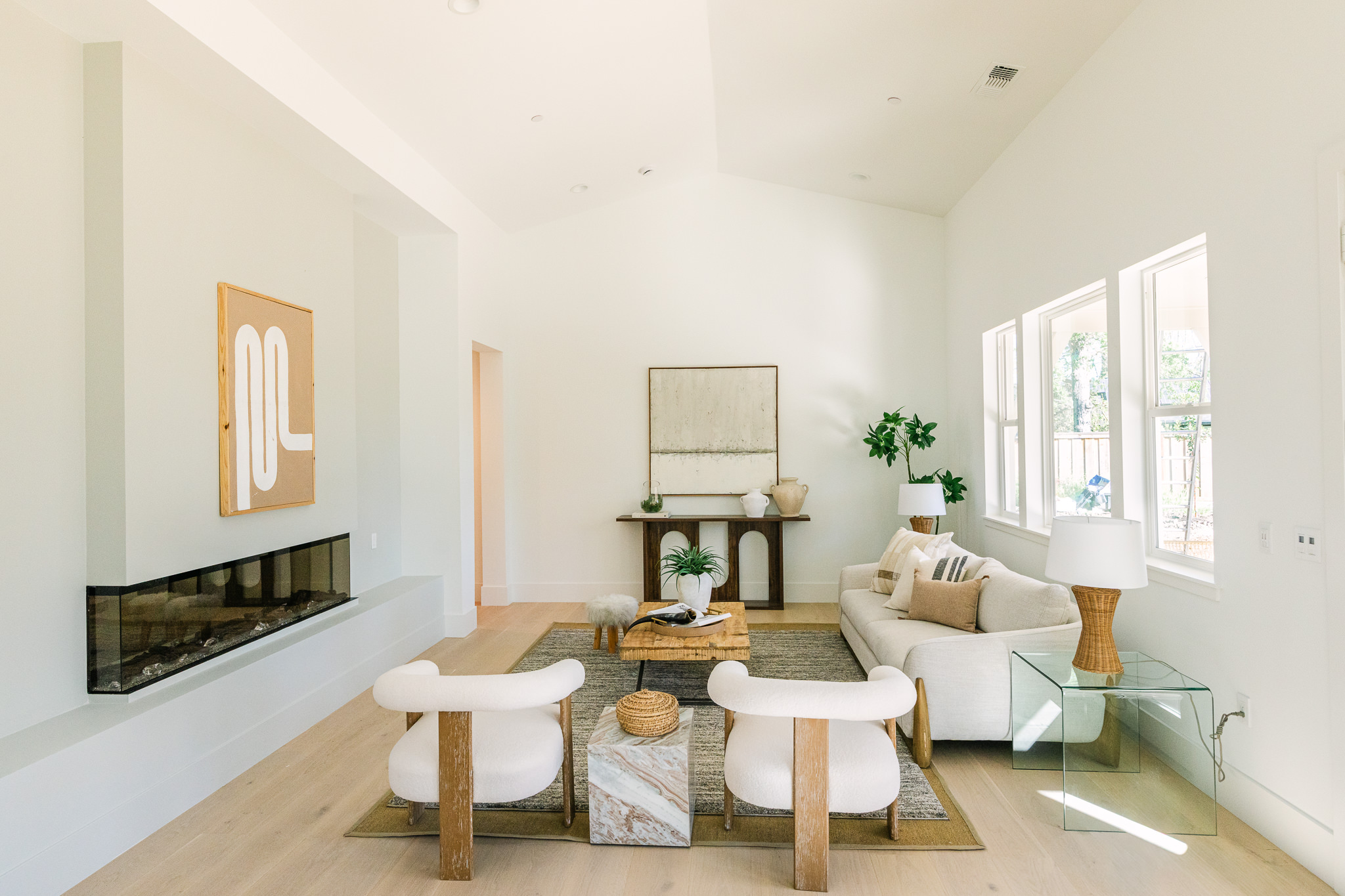 Luxury finishes include European White Oak engineered hardwood floors, designer tiles throughout, and expansive living spaces that include a covered outdoor patio with Andersen French doors.