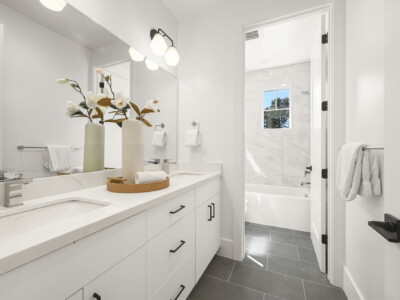 Each home features five bedrooms and three-and-a-half baths, including two suites. The fifth bedroom is also perfect as a home office or playroom. Designed for modern living and entertaining, the homes showcase soaring 12-foot ceilings in the kitchen and great room, 9-foot ceilings throughout, and a chef’s kitchen with made-in-USA custom cabinetry, premium Thermador appliances and a 7-foot center island. Luxury finishes include European White Oak engineered hardwood floors, designer tiles throughout, and expansive living spaces that include a covered outdoor patio with Andersen French doors.